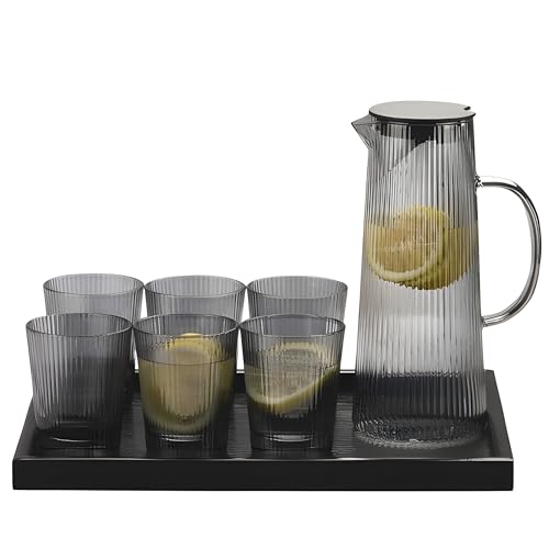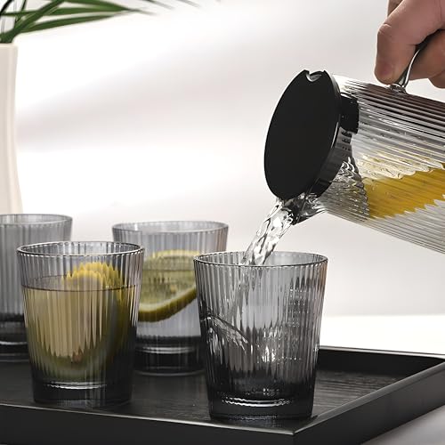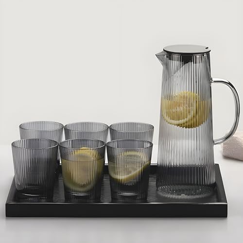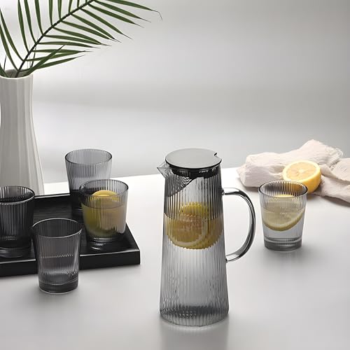- طقم متكامل 5×1 يضم دورق زجاج فاميه أنيق مع أربع أكواب متناسقة وصينية تقديم، مثالي لتقديم العصائر والمشروبات في المنزل أو أثناء الضيافة والعزومات