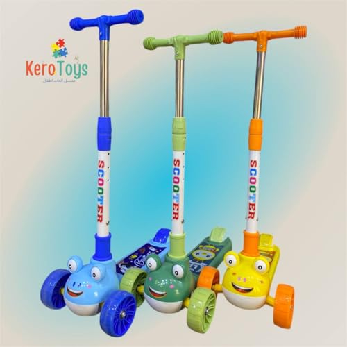 Next store - سكوتر أطفال ثلاثي العجلات بتصميم ضفدع من Next Store ، مع عجلات مضيئة ومقود قابل للتعديل، قاعدة عريضة مانعة للانزلاق وفرامل، لعبة ركوب آمنة للمبتدئين، هدية مثالية للأولاد والبنات.