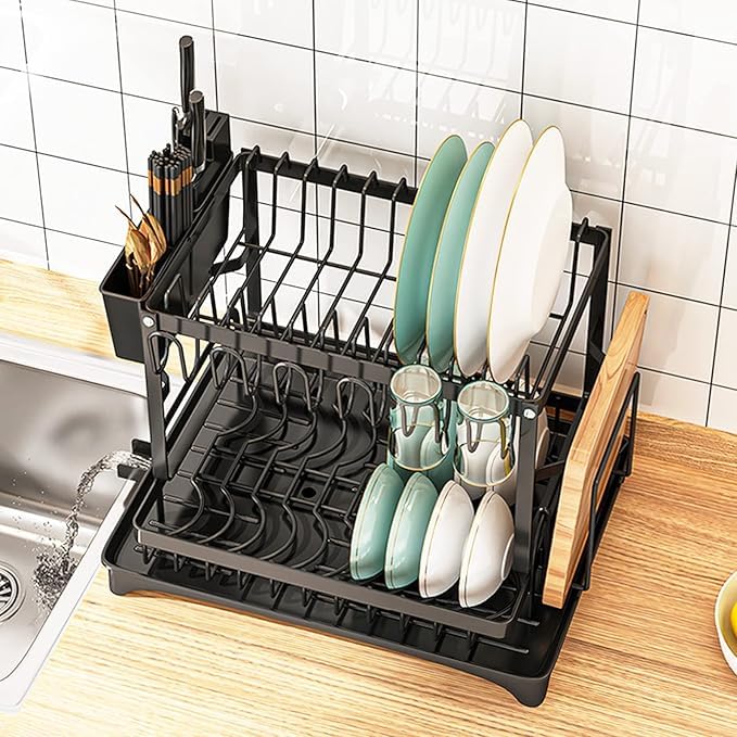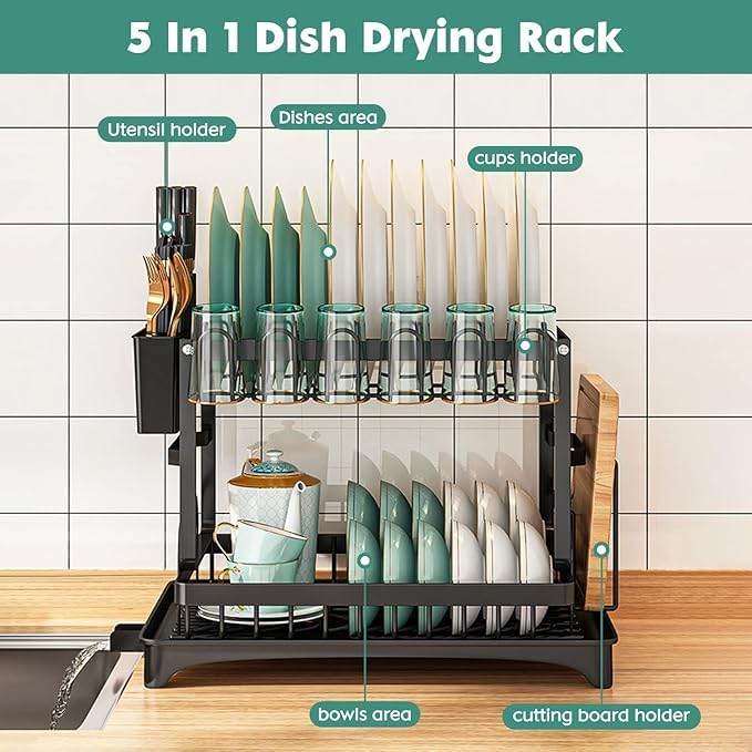 - [تصميم ذكي بطبقتين] : احصل على سعة تخزين مضاعفة دون الحاجة إلى مساحة إضافية، بفضل التصميم المكون من طبقتين القابل للطي. مناسب لتجفيف الأطباق والأكواب وأدوات المائدة في آنٍ واحد، مما يجعل مطبخك أكثر ترتيبًا وأناقة.