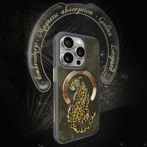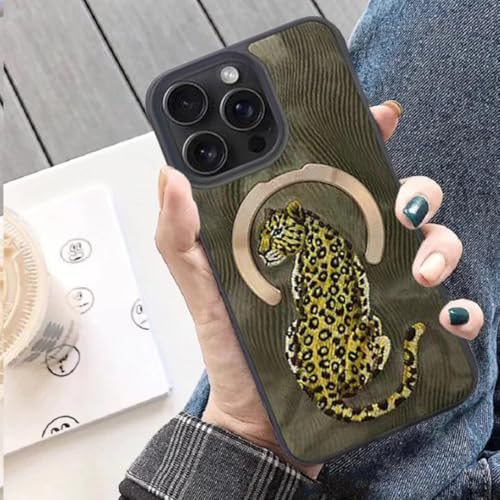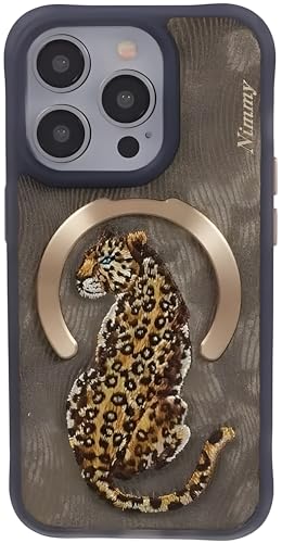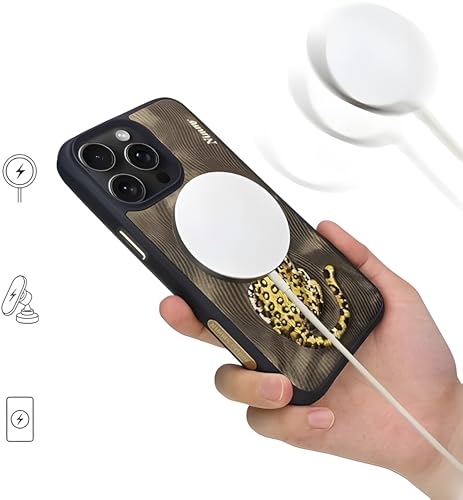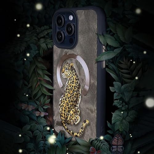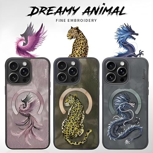 Next store - حافظة خلفية من Next Store من الجلد الأصلي مطرزة بالتنين وشحن لاسلكي ومضادة للصدمات وممتص للصدمات متوافق مع غطاء حماية خلفي متوافق مع ايفون 15برو ماكس (بني)