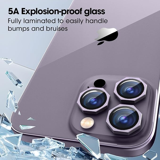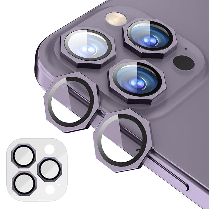 Next store - واقي عدسة كاميرا بشكل سداسي هندسي من Next Store متوافق مع iPhone 14 Pro Max – غطاء كاميرا من الزجاج المقوى 9H مع حلقة معدنية ، مقاوم للخدوش و الصدمات. (ارجواني)