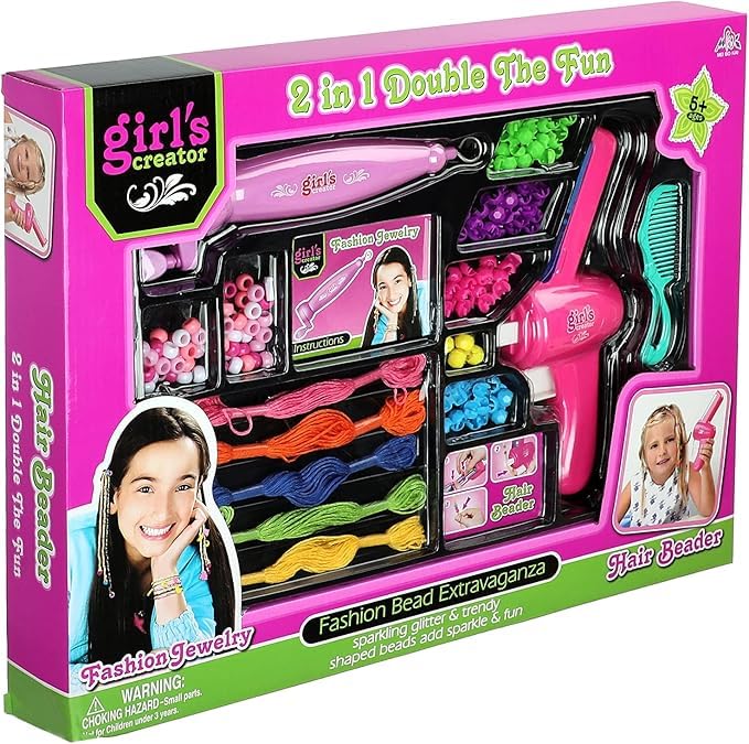 Next store - لعبة ماكينة لصنع خرز الشعر للبنات من Next Store، لعبة ترفيهية إبداعية لتصميم أساور الشعر، أدوات وحرف يدوية، هدايا ممتعة للبنات، ألعاب فنية مبتكرة للأطفال.