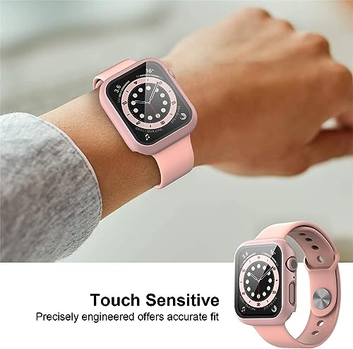 Next store - جراب حماية صلب مع شاشة حماية من الزجاج المقوى بتصميم متين ورفيع جدًا لساعة اي ووتش سلسلة 4/5/6 مقاس 40 ملم من نكست ستور (لون روز بينك)