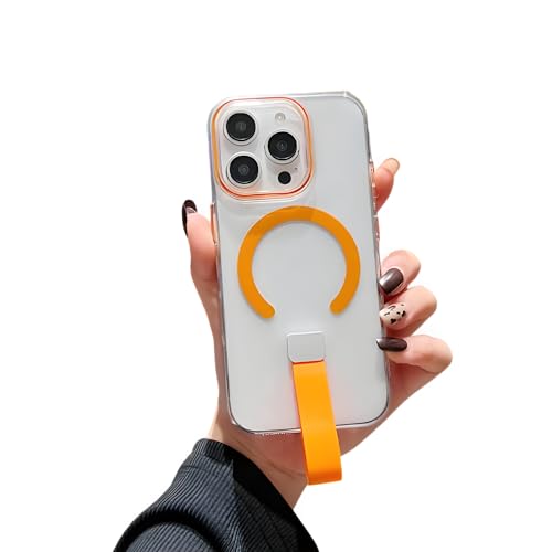 Next store - جراب شفاف صلب من Next Store | متوافق مع iPhone 13 Pro، مع حلقة إصبع محمولة باليد | مسند مدمج متعدد الزوايا | يدعم الشحن اللاسلكي المغناطيسي. (برتقالي)