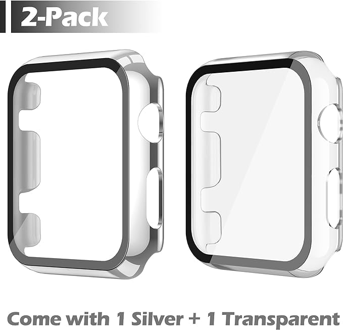 Next store - جراب حمايه صلب من البولي كربونات من Next Store مع شاشة حماية من الزجاج المقوى متوافق مع ساعة اي ووتش سيريس 1/2/3 مقاس 42 ملم، غطاء خفيف الوزن مقاوم للصدمات والخدش.