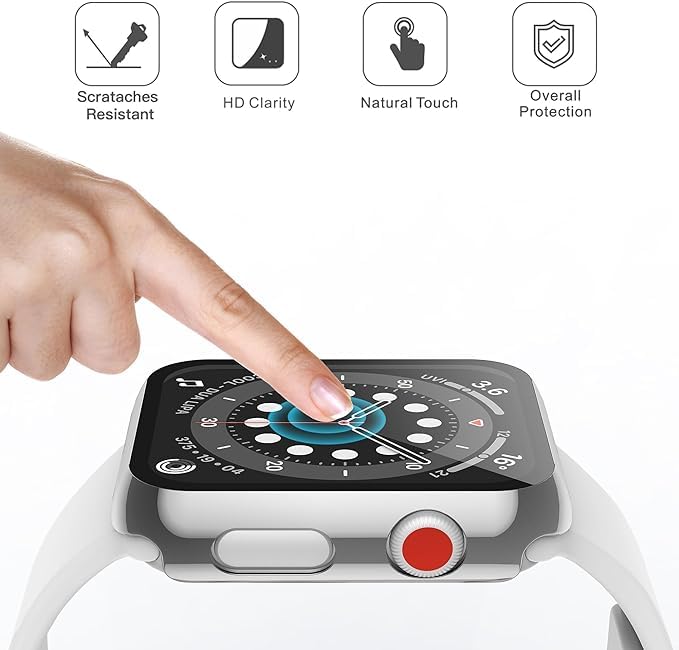 - [شاشة حماية مدمجة من الزجاج المقوى]: يأتي الجرب مزودًا بشاشة حماية من الزجاج المقوى، مما يوفر طبقة إضافية من الأمان لشاشة ساعتك. تحمي هذه الشاشة المقواة من الخدوش والشروخ التي قد تحدث نتيجة للاستخدام اليومي، مما يضمن لك وضوحًا دائمًا للشاشة دون القلق من التلف أو التشوه.