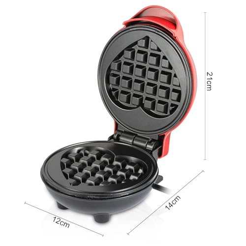- [تصميم مميز على شكل قلب] : أضف لمسة حب إلى وجباتك مع صانعة الوافل الصغيرة بشكل قلب، مثالية لتحضير إفطار أو وجبات خفيفة ممتعة للأطفال والعائلة.