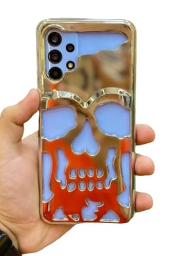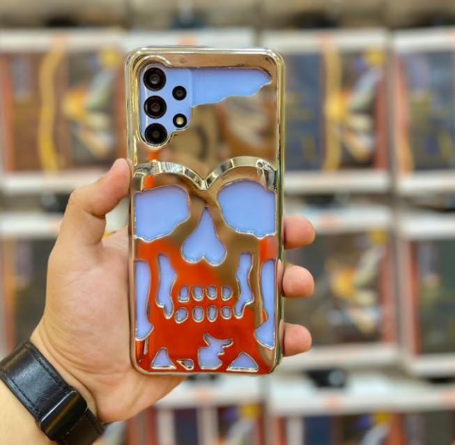 Next store - حافظة بتصميم جمجمة مجوفة من نكست ستور جريء وانيق متوافق مع سامسونج جالاكسي A12 مفرغة الهواء لتهوية الهاتف لمنع الحرارة ذهبي متدرج البولي يوريثين الحراري