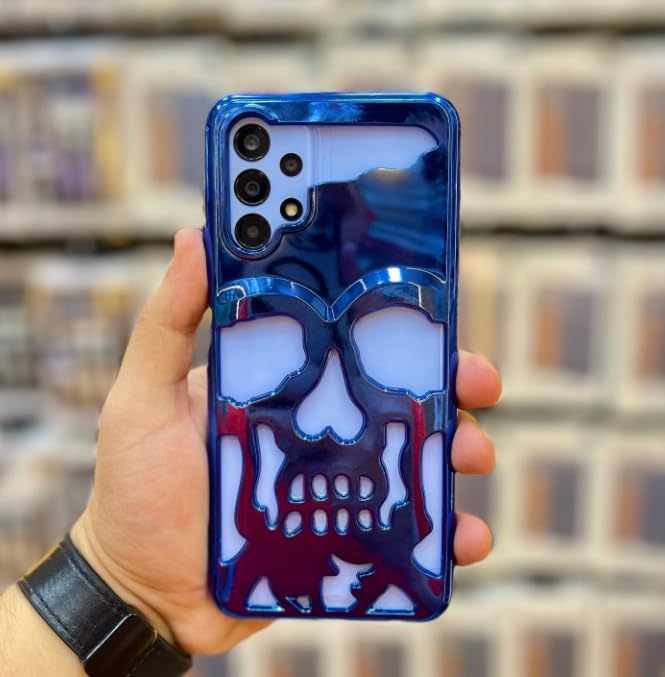 Next store - جراب بتصميم جمجمة مجوف من نيكست ستور جريء وانيق متوافق مع شاومي ريدمي 13C غطاء مفرغ الهواء جيد التهوية لمنع الحرارة ازرق حافظة بسيطة البولي يوريثين الحراري