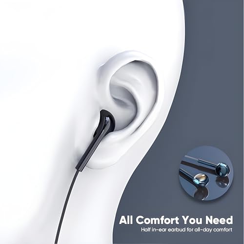 - [راحة تدوم طوال اليوم] : تصميم مريح وخفيف الوزن يناسب الأذن بشكل مثالي، مما يوفر استخداماً مريحاً حتى لفترات الاستماع الطويلة دون أي إزعاج.