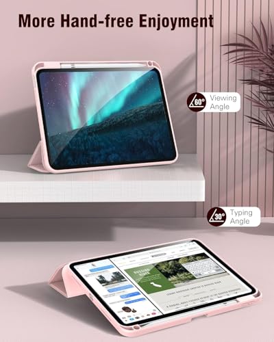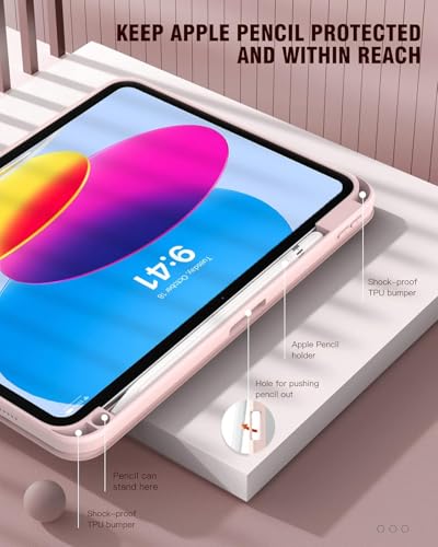 Next store - جراب حماية اي باد الجيل العاشر، موديلات 2022، حافظة اي باد الجيل العاشر، غطاء اي باد مقاس 10.9 بوصة الجيل العاشر، ظهر شفاف، تخزين القلم، حماية كاملة جديدة، امتصاص الصدمات من نيكست ستور (بينك)