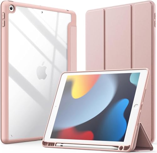Next store - جراب خلفي ماص للصدمات مع حامل قلم مدمج بميزة النوم - التشغيل التلقائي شفاف لايباد جيل سادس - خامس 9.7 بوصة 2018 - 2017 وايباد برو 9.7 2016 اير ثاني - اول من Next store زهري بولي يوريثين