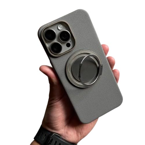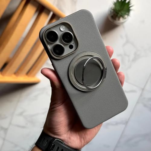 Next store - جراب حماية فاخر من الجلد من Next Store متوافق مع iPhone 15 Pro Max - حماية مضاد للصدمات - مزود باطار معدني - يدعم الشحن المغناطيسي - تصميم انيق و عصري (رمادي)