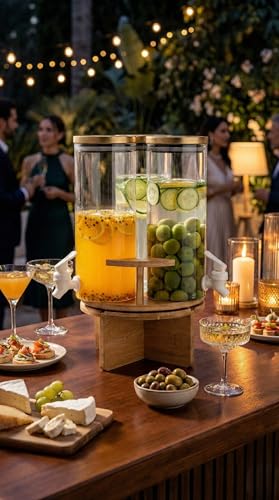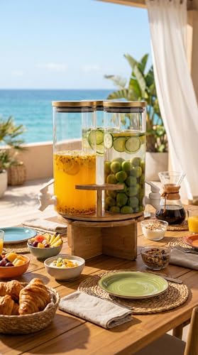 - [التقديم والضيافة] : مثالي لتقديم مختلف أنواع الـ عصائر ومشروبات الباردة والمياه المنكهة بشكل جذاب وعملي، سواء في العزائم الكبيرة، حفلات الاستقبال، أو للاستخدام اليومي على سفرة الطعام، مما يسهل على الضيوف وأفراد العائلة خدمة أنفسهم بأنفسهم بكل سهولة وأناقة.