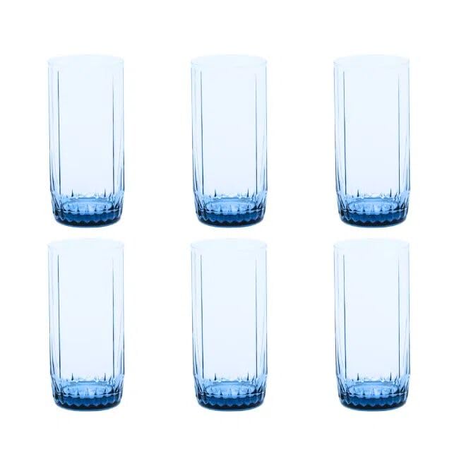 Next store - طقم كاسات عصير ومياه زجاجية من Next store – سعه 360 مل – 6 قطع شفافة أنيقة | تصميم عصري مثالي للعصائر والمياه والمشروبات المتنوعة للاستخدام اليومي والضيافة (ازرق)