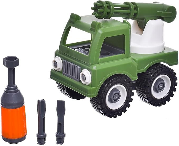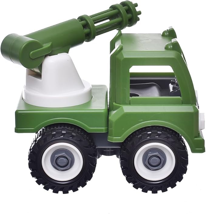 Next store - لعبة شاحنة عسكرية بمدفع دوار قابلة للفك والتركيب للأطفال من Next Store،مركبة جيش خضراء | لعبة بناء تعليمية مع مفك وأدوات آمنة | هدية للأولاد والبنات الصغار.