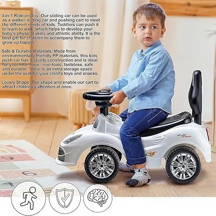 - السيارة خفيفة الوزن وسهلة التحكم، مع مقبض مريح يساعد الأطفال على تحريكها بسهولة أثناء المشي، مما يعزز مهارات التوازن والتنسيق الحركي بشكل فعّال.