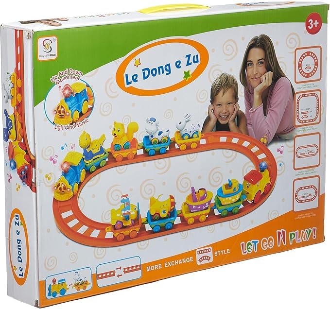 Next store - لعبة قطار للأطفال من Next Store - قطار كرتوني مع مسار وأضواء وموسيقى - لعبة تعليمية، ألعاب تجميع، هدية رائعة للأطفال 3 سنوات فما فوق، آمنة وغير سامة