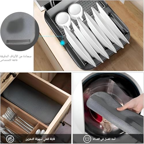 - سجادة مواعين عملية وأنيقة مصممة بخامة ماصة وقوية تساعد على تجفيف المواعين بسرعة وفعالية