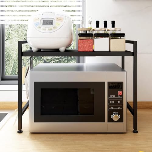 - [ تصميم قابل للتعديل والتمديد ] تم تصميم هذا الرف ليكون مرناً وسهل التخصيص، حيث يمكنك تعديل ارتفاعه وعرضه ليتناسب مع مساحة المطبخ لديك. يوفر لك حلاً ذكياً لترتيب الميكروويف والأدوات فوقه وتحته بشكل مرتب ومنظم دون ازدحام.