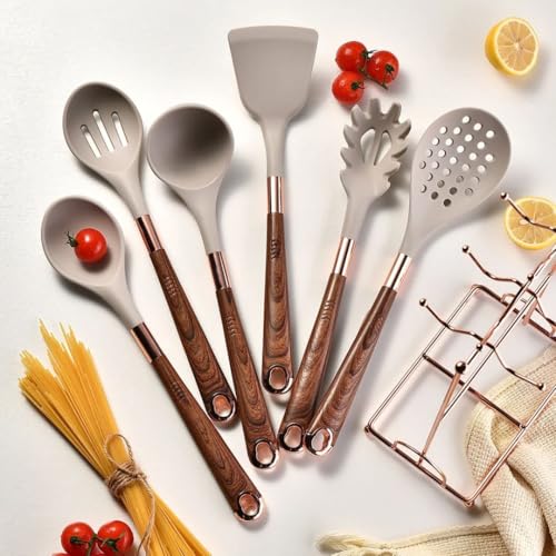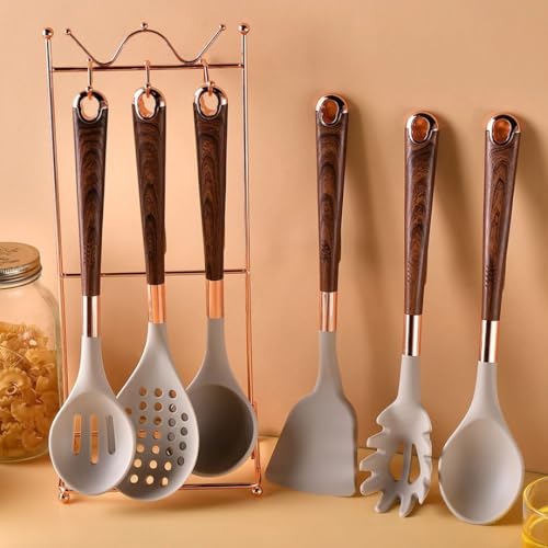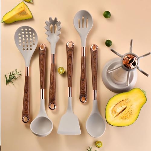- التكامل والتنوع: تتكون المجموعة من 6 قطع متنوعة الأشكال والأحجام (مغرفة، ملعقة، سباتولا، إلخ) بالإضافة للحامل، لتلبية مختلف مهام المطبخ مما يغنيك عن شراء أدوات فردية ويوفر حلاً متكاملاً.
