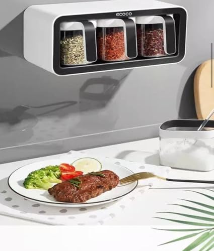 Next store - علبة بهارات جدارية للمطبخ مع برطمانات توابل من Next store – منظم توابل منزلي لحفظ الملح والبهارات – تصميم أنيق لتوفير المساحة وترتيب المطبخ