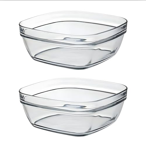 Next store - طقم 2 بولة زجاج مربع كبيرة من Next Store، زجاج بايركس شفاف، سعة 1140مل، مقاس 17x17x7سم، مثالي للسلطة، الفواكه والحلويات