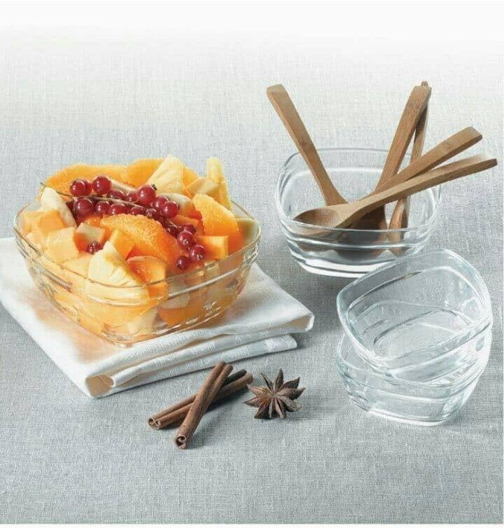- [زجاج بايركس متين] : مصنوع من زجاج بايركس عالي الجودة، متين ومقاوم للحرارة والصدمات البسيطة. يوفر استخدامًا آمنًا وطويل الأمد لتقديم السلطة، الفواكه، الحلويات أو أي أطباق أخرى، مع الحفاظ على المظهر الشفاف الأنيق.