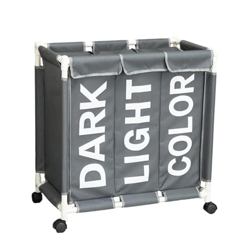 Next store - باسكت غسيل 3×1 مزود بعجل من Next store – عملي وسهل النقل – خامة مشمع تقيل مقاوم للماء – تصميم أنيق للتنظيم – جودة عالية لحفظ الملابس والأغراض (رمادي)