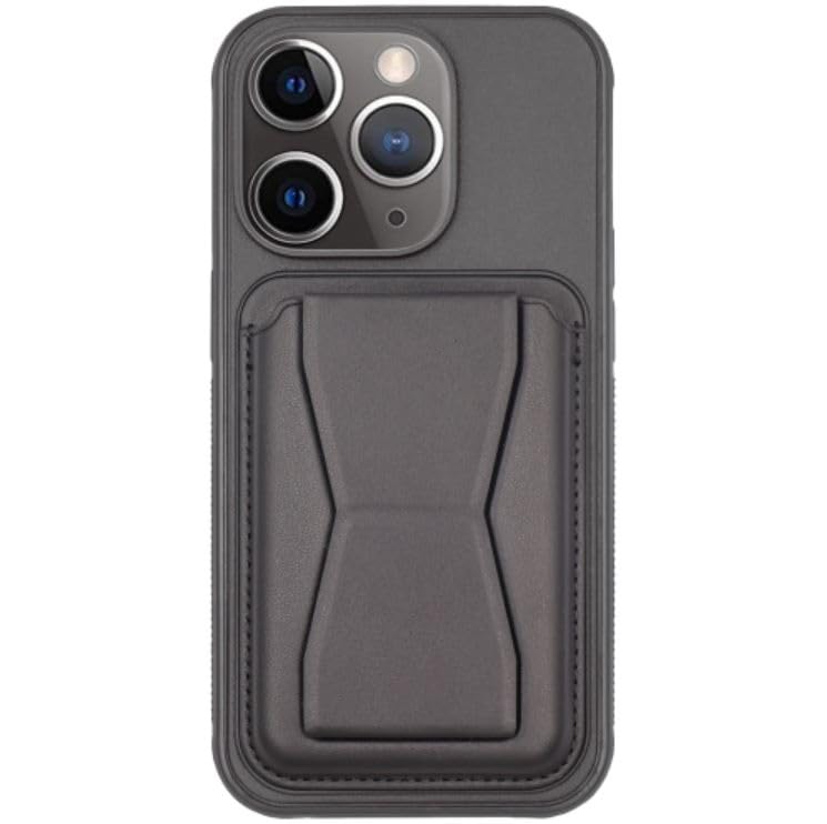 Next store - جراب جلد متوافق مع هاتف ايفون 12برو ماكس من Next Store مقاومة للصدمات تخزين البطاقة الخلفية بالأضافة الي مسند للهاتف أسود للبالغين الجنسين