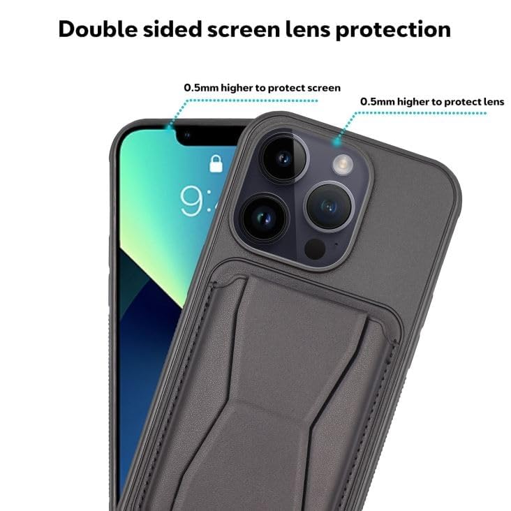 Next store - جراب جلد متوافق مع هاتف ايفون 13ProMax من Next Store مقاومة للصدمات تخزين البطاقة الخلفية بالأضافة الي مسند للهاتف كحلي للبالغين الجنسين