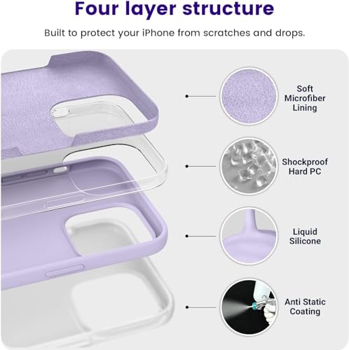 Next store - جراب حماية من السيليكون السائل متوافق مع موبايل آيفون 15 برو ماكس (6.7 بوصة) مصمم ببطانة ناعمة مضادة للخدش من المايكروفايبر، جراب موبايل رفيع لحماية هيكل الموبايل بالكامل من نكست ستور، لافندر