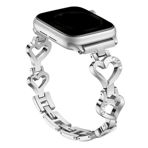 Next store - سوار حلقي مقاس 49 و45 و44 و42 ملم متوافق مع ساعة اي ووتش 9 8 7 6 SE 5 4 3 2 1 مع أساور معدنية خفيفة ورفيعة للنساء للمناسبات الرسمية بلون فضي من نيكست ستور