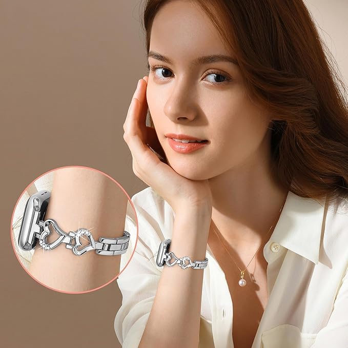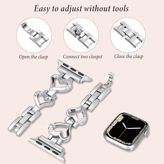 - [توافق مع مختلف الأحجام] : يتوفر السوار بمقاسات متعددة مثل 45 مم، 44 مم، و42 مم، مما يجعله مناسبًا لمجموعة واسعة من المعاصم. بفضل التعديلات الدقيقة في تصميمه، يمكن ضبط السوار بسهولة ليمنحك الراحة التي تحتاجينها. لا داعي للقلق بشأن المقاس، فالسوار مصمم ليتناسب مع مختلف احتياجاتك، مما يجعله مناسبًا لكل امرأة تبحث عن الأناقة والراحة في آن واحد.