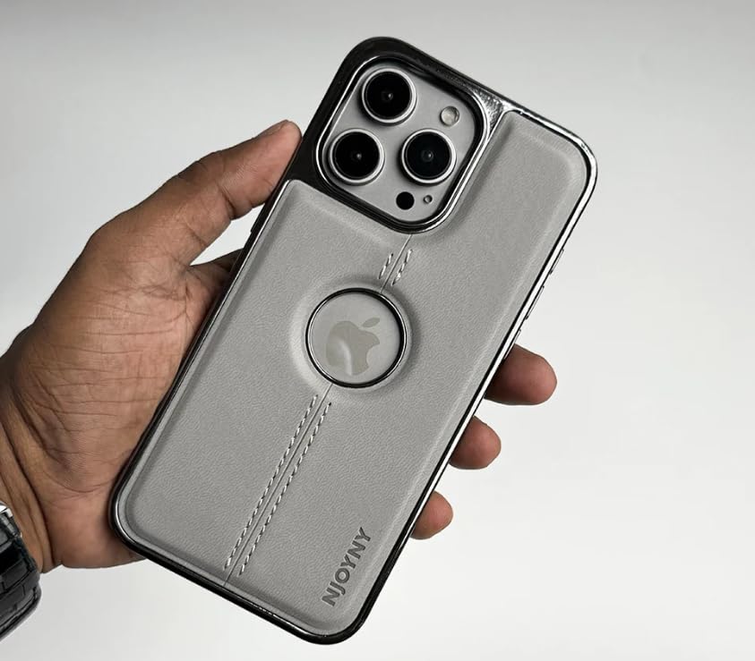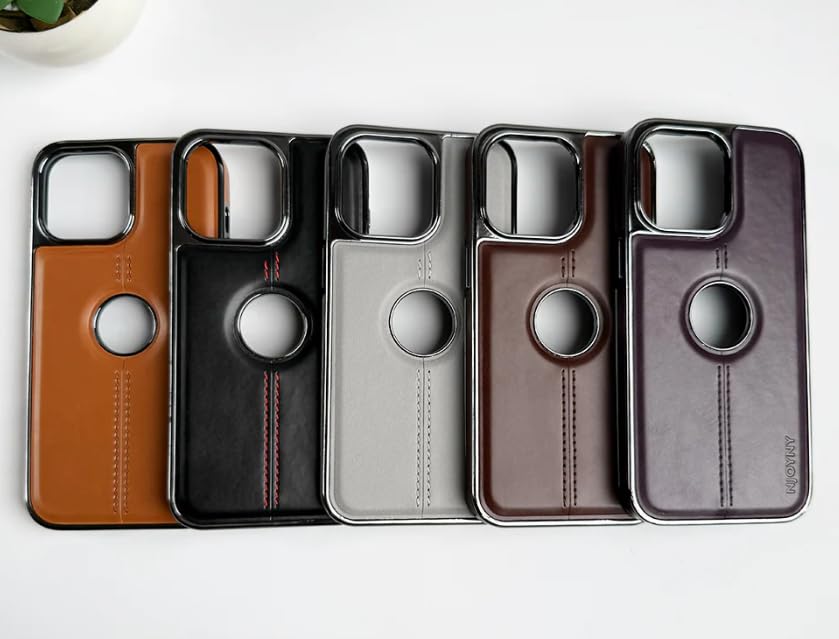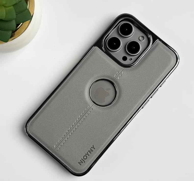 Next store - جراب حماية من الجلد الصناعي مع خياطة متوسطة وحواف من الكروم لـ 16 برو ماكس، رفيع، وخفيف الوزن، ومقاوم للصدمات من نيكست ستور (رمادي)