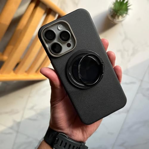 Next store - جراب حماية فاخر من الجلد من Next Store متوافق مع iPhone 15 Pro Max - حماية مضاد للصدمات - مزود باطار معدني - يدعم الشحن المغناطيسي - تصميم انيق و عصري (اسود)