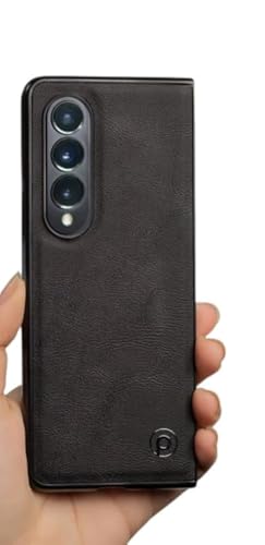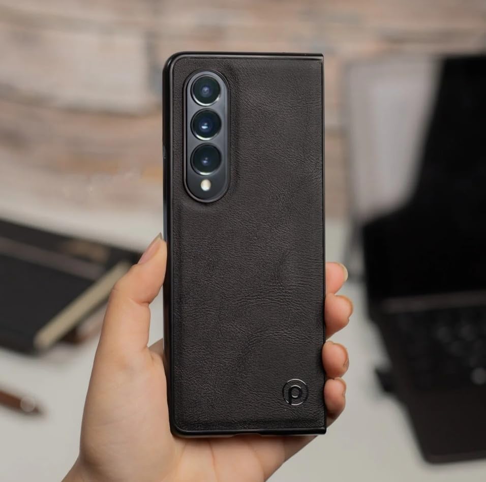 Next store - جراب حماية خلفي مصنوع من الجلد، يأتي بتصميم أنيق لموبايل سامسونج جالاكسي Z فولد 3، يمكنه توفير حماية شاملة للشاشة والكاميرا من الخدوش والصدمات من نيكست ستور (أسود)