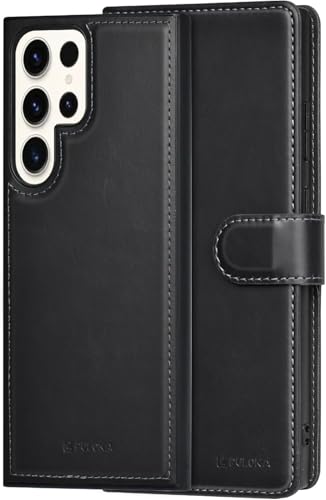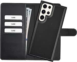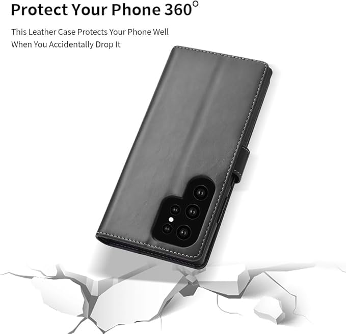 Next store - جراب حماية من جلد طبيعي بتصميم كلاسيك أنيق مع حامل كروت متعددة من نكست ستور، مع حماية كاملة بإغلاق مغناطيسي مقاوم للصدمات متوافق مع موبايل سامسونج جالاكسي S24 الترا مناسب كهدية مثالية (أسود)