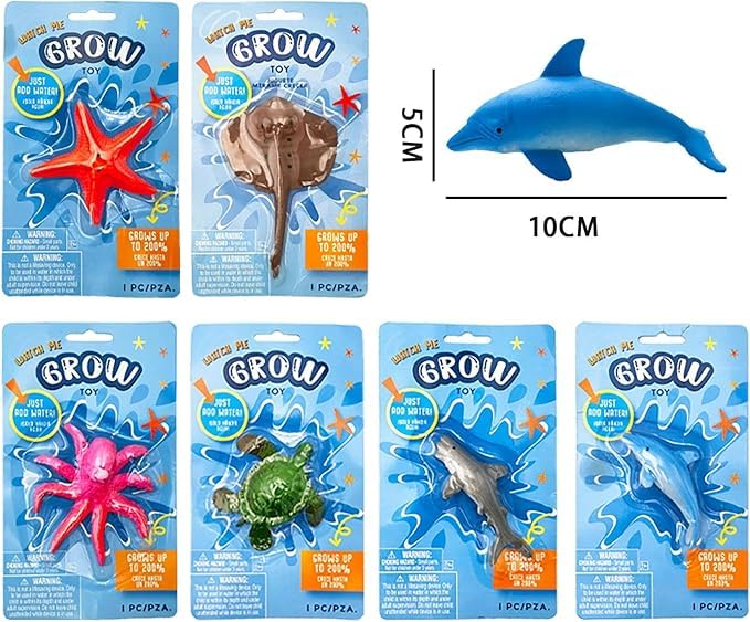 - مجموعة مخلوقات بحرية سحرية تنمو تدريجياً عند وضعها بالماء، مما يمنح الأطفال تجربة ممتعة ومثيرة تتضمن متعة التعلم.