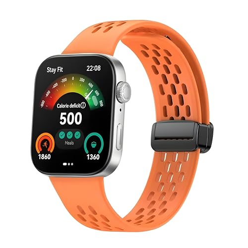 Next store - سوار مغناطيسي من السيليكون مزود بمسامات للتهوية متوافق مع ساعة هواوي فيت 3 2024 من نكست ستور - (لون برتقالي)