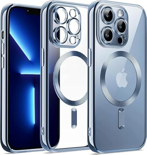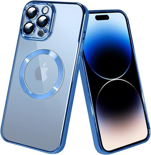 Next store - جراب مغناطيسي متوافق مع موبايل ايفون 14 برو يدعم شاحن ماج سيف مع واقي عدسة الكاميرا حماية كاملة من البولي يوريثين المقاوم للصدمات من Next store أزرق فاتح للبالغين من الجنسين