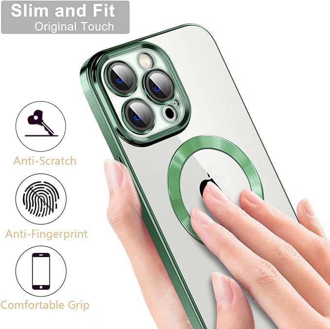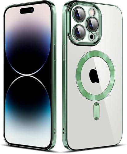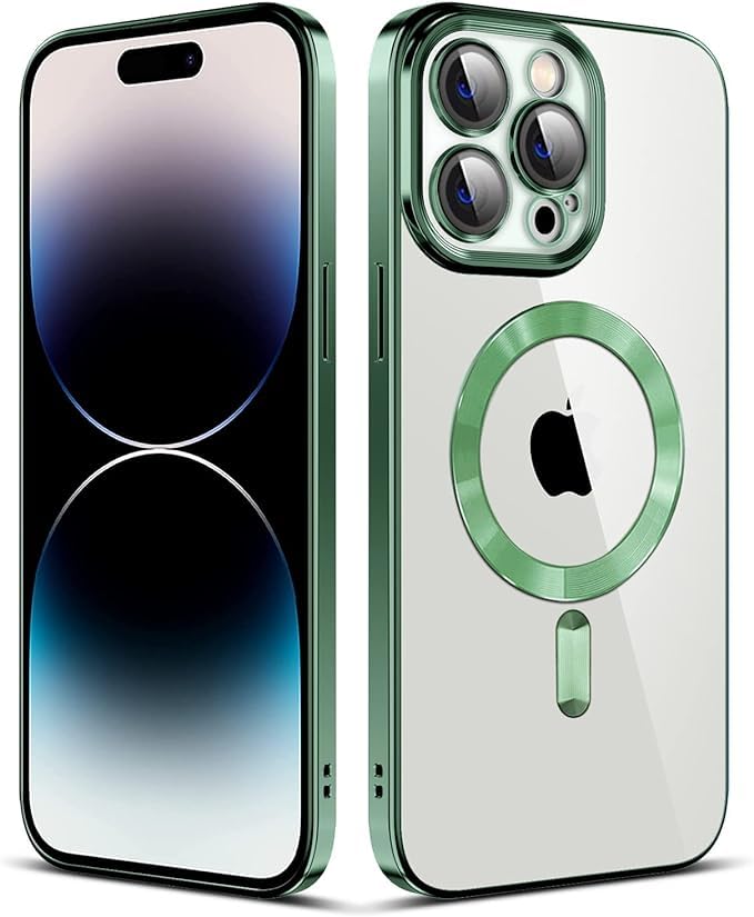 Next store - جراب مغناطيسي شفاف لموبايل ايفون 13 برو ماكس يدعم شاحن ماج سيف مع واقي عدسة الكاميرا حماية كاملة من البولي يوريثين المقاوم للصدمات Next store أخضر للبالغين الجنسين