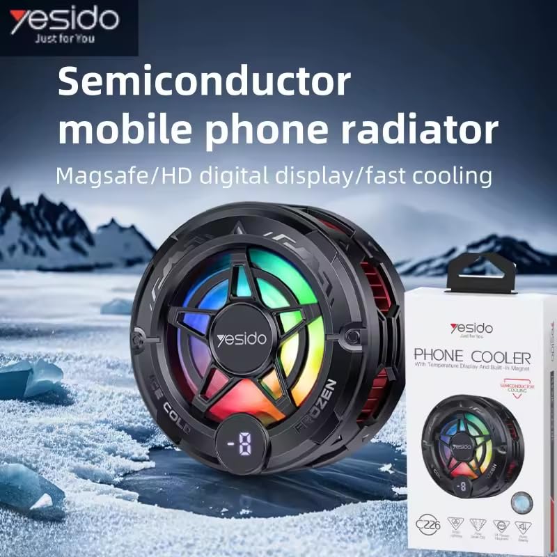 Next store - مروحة تبريد مغناطيسية للهواتف من Next Store، مشعاع أشباه الموصلات، شاشة رقمية، إضاءة RGB، تبريد فعال للألعاب، تصميم عملي، تثبيت سريع وآمن، أداء ممتاز للهاتف