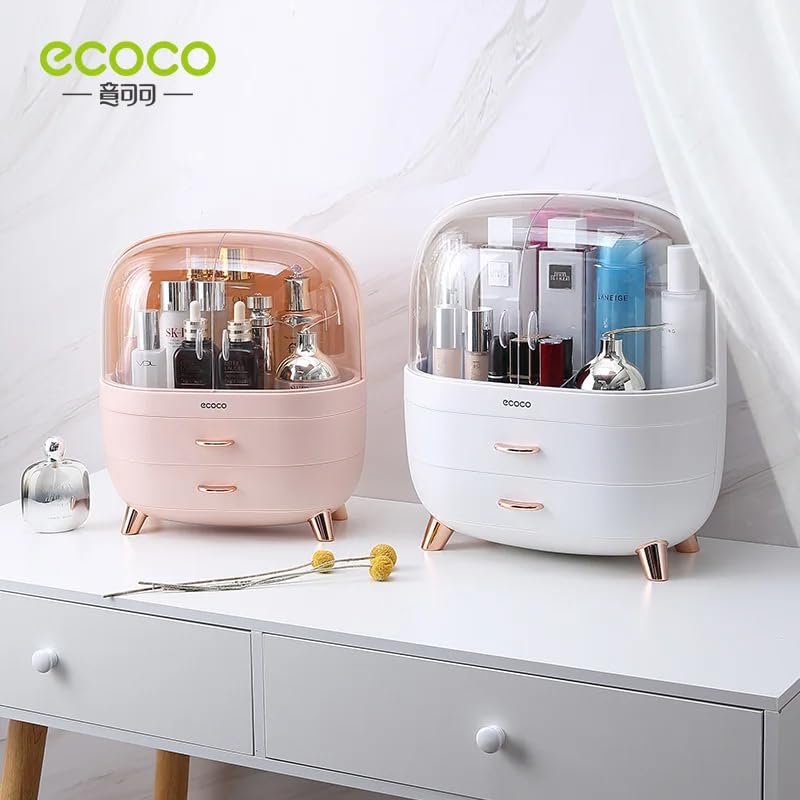 - تصميم متعدد الأدراج لتخزين ذكي: يتميزمنظم المكياج هذا بتصميم فريد يضم أدراجاً سفلية متعددة ومساحات علوية مقسمة. هذا التوزيع العملي يسمح لكِ بتصنيف وتخزين مختلف أدوات المكياج، من أحمر الشفاه والفرش الصغيرة إلى العطور والزجاجات الطويلة، مما يسهل عليكِ العثور على ما تحتاجينه بسرعة ويحافظ على ترتيب مساحتك.