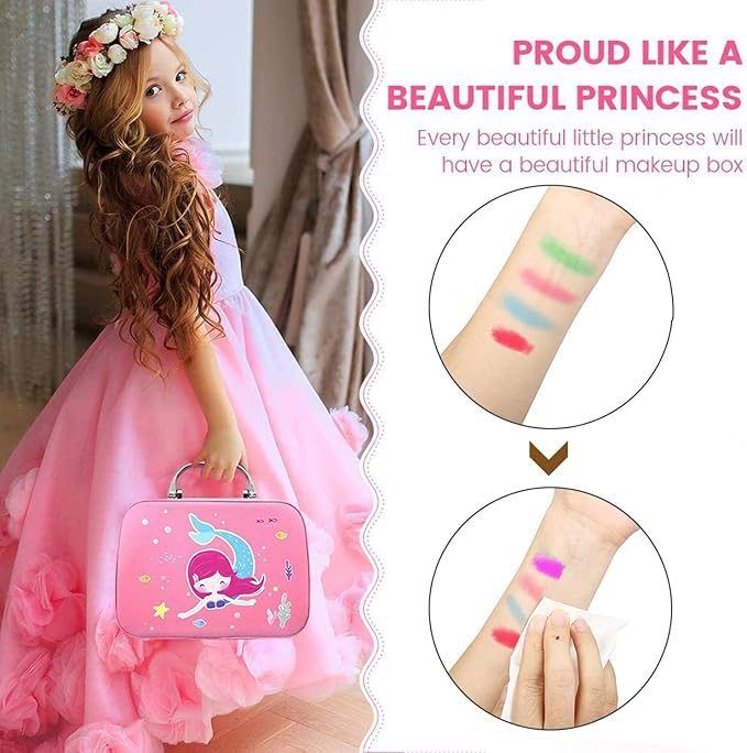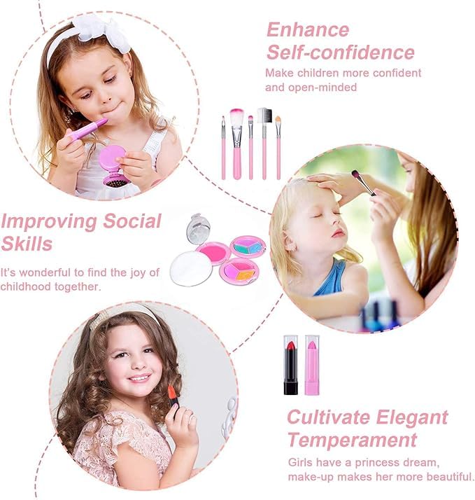 - [مناسبة للأميرات الصغيرات : ] مناسبة تماماً للفتيات الصغيرات اللواتي يحببن اللعب والتخيل. مع شنطة مستحضرات التجميل اللطيفة وأدوات المكياج الآمنة، يمكن للأطفال الاستمتاع بتجربة مكياج ممتعة تشعرهم وكأنهم يتحولون إلى أميرات في عالمهم الخيالي.