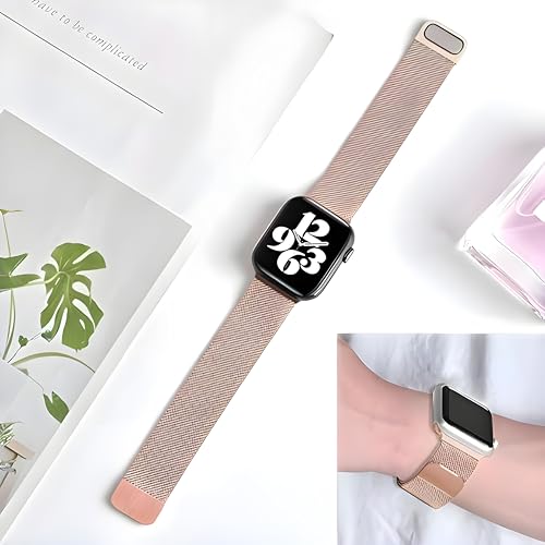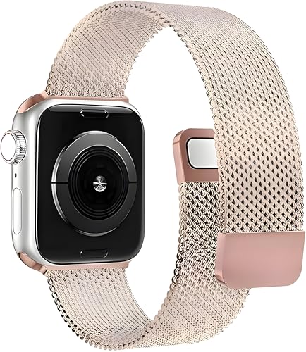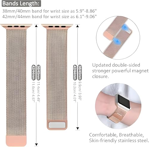 Next store - سوار معدني من Next Store متوافق مع ساعة اي وواتش سريس1/2/3/4/5/6/7/8/9 مقاس 38/40/41ملم ، سوار بتصميم شبكي من الاستانلس ستيل المقاوم للصدا مع مشبك مغناطيسي.
