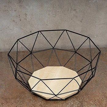 Next store - سلة تخزين فواكه معدنية بقاعدة خشبية من Next store – تصميم عصري أنيق لتزيين المطبخ وغرفة الطعام – مثالية لتخزين الفواكه والخبز والاستخدام كديكور منزلي عملي