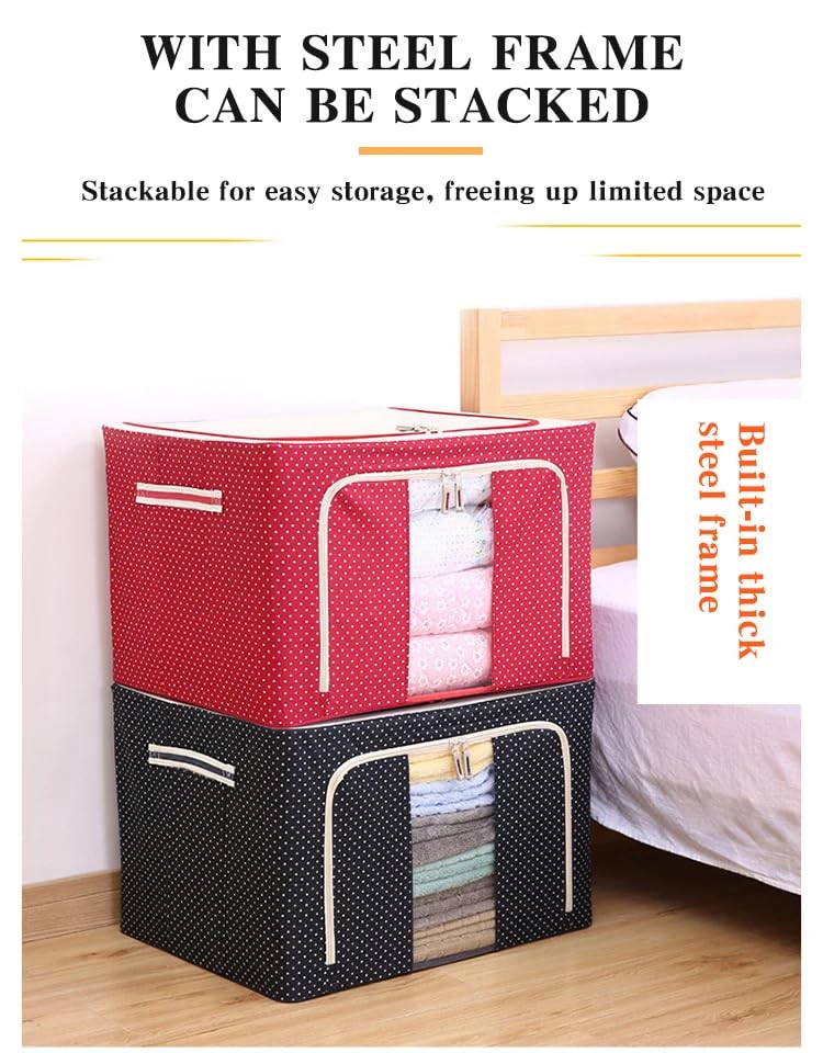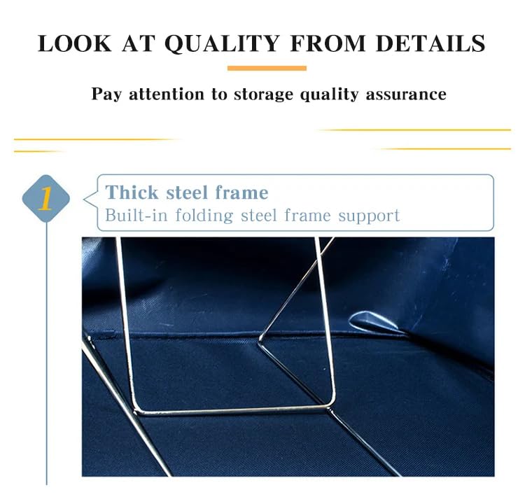 - [تصميم معدني قوي يدعم الثبات] : يأتي بوكس التخزين مزودًا بقوائم معدنية متينة تمنحك ثباتًا ممتازًا أثناء الاستخدام، مما يجعله قادرًا على تحمل الأغراض المختلفة دون أن يفقد شكله. التصميم الداخلي يعتمد على شاسيه معدني يوفر دعامة قوية ويمنع الانهيار أو الترهل، ليجعل الصندوق مثاليًا للاستخدام المكرر سواء في غرف النوم أو المكاتب أو غرف الأطفال.