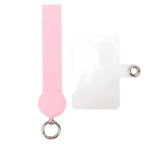 Next store - حامل سلسلة للجوال من Next Store ، حزام يد قصير مع بطاقة تثبيت توضع داخل الكفر، سير قماشي متين لمنع سقوط الهاتف ، متوافق مع جميع هواتف ايفون وسامسونج . (بينك)