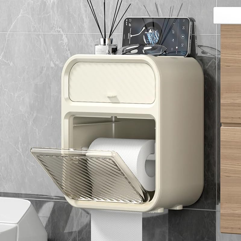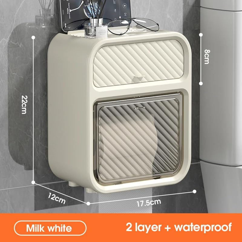 Next store - علبة مناديل حمام عصرية ومضادة للماء من نكست ستور، حاملة ورق تواليت بلاستيكية للتثبيت على الحائط بدون حفر، عملية وأنيقة لتخزين الحمام والحفاظ على جفاف وتنظيم الورق (لون أبيض)